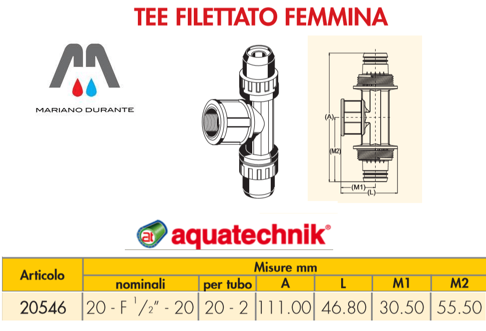AQUATECHNIK SAFETY TEE FEMMINA 1/2-20 COD. 20546
