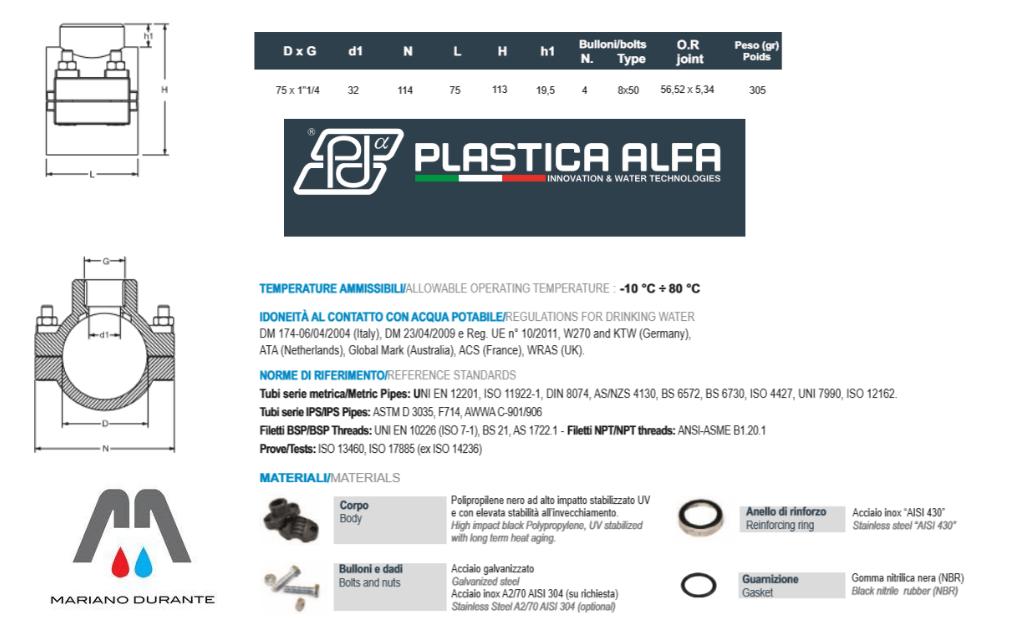 PRESA A STAFFA PER TUBO ACQUA POLIETILENE PLASTICA ALFA 75X1″1/4