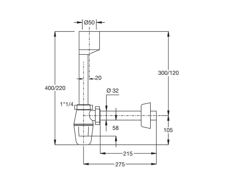 SIFONE MOPLEN X ORINATOIO A BOTTIGLIA DIAM. 32X230 mm BONOMINI 2126CP32B0