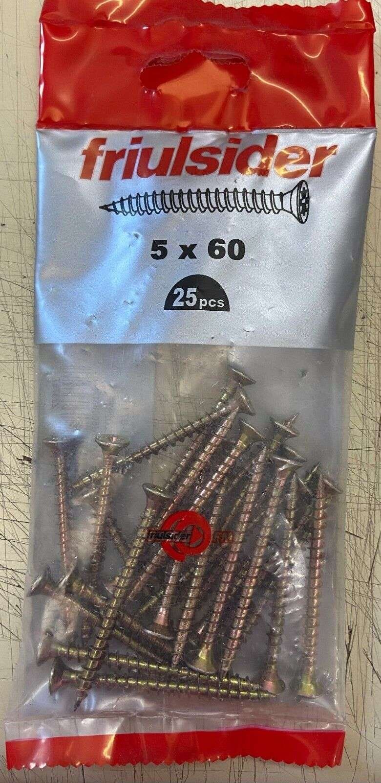 Vite TPS truciolare 5×60 Friulsider 07101D50060F2-zincata gialla-25 pZ BLISTER